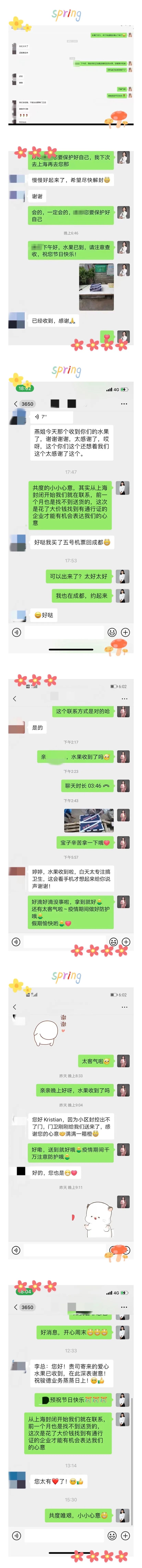 在这个春暖花开的季节,我们本该携手并进,共创辉煌。然而,突如其来的疫情却打乱了所有人的节奏,上海按下暂停键,社区持续封闭,隔离期的混乱也给骏德集团上海分公司同事和不少在沪客户的生活带来了巨大挑战,同时,也令骏德集团全司上下牵心。 在了解到到许多居家已久的员工及客户存在物资紧缺的难题,又考虑到封控隔离、物流受阻,物资送递存在一定难度。为了缓解大家居家抗“疫”期间缺少蔬果的困境,骏德调动各方渠道资源,为客户及公司小伙伴送上一份“水果礼箱”。 疫情无情,但人间有情,在4月29日下午正式开启水果礼箱配送,骏德集团领导及人事行政部门同事持续跟进水果派送情况以及在骏德群内更新实时物流情况,保障水果礼箱顺利交到客户及员工手中。 虽然大家身陷囹圄,但请相信这样的日子很快就会过去。我们深知在居家隔离期间,大家会出现各种的负面情绪。因此,在这里给大家提出几点建议: 正常有规律的健康生活作息非常重要,虽然被隔离,提倡每天还要保持原有的生活作息规律,多饮水,多吃水果,在室内做适当适度的体育运动锻炼。 打开手机后各种有关疫情的消息不断弹出,有时让我们相对紧张,徒然增加了自己的焦虑和恐慌情绪,影响自己的心情。日常生活中,要学会放一放,可以定时查看手机新闻,而不是每分每秒都在刷屏。 一定要坚持乐观心态 选择适当的娱乐活动,多运动,深呼吸,听听音乐,泡泡热水澡或冲澡,多做家务,适当和朋友及家人利用微信聊天。总之,找出可以转移注意力或者让自己愉悦的事情来做。 一定要坚持做好个人防护 面对身体病毒感染的不确定性,隔离期间要做好个人防护,尽量独居一室,才能有效保护家人,在室内也要佩戴口罩,勤洗手,给家里勤通风,避免在家人面前过度暴露,每天定时给家居用品消毒。 隔离不隔爱,封闭不封心。骏德人一直在您身边,与您心手相牵,守望相助。静待黎明破晓,山河无恙。